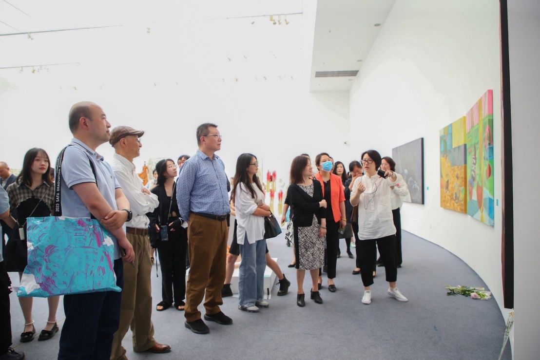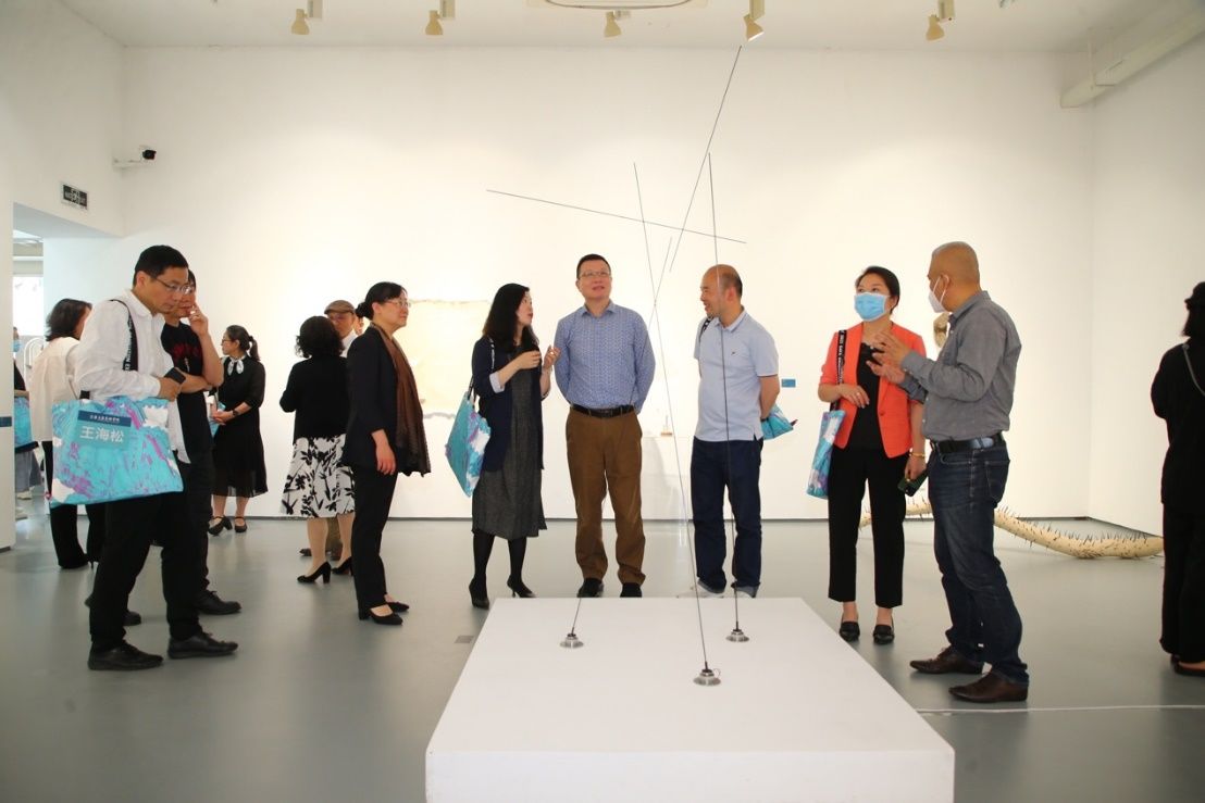 开幕式上还举行了主视觉视频发布仪式,各位嘉宾共同为2023yl6809永利毕业季暨毕业展揭幕。随后,策展人程雪松副经理介绍本科毕业展总体情况、策展人翟庆喜副经理介绍研究生毕业展总体情况。齐然、唐天衣、肖敏、刘晓军等老师以及部分参展同学为各位嘉宾做现场导览。