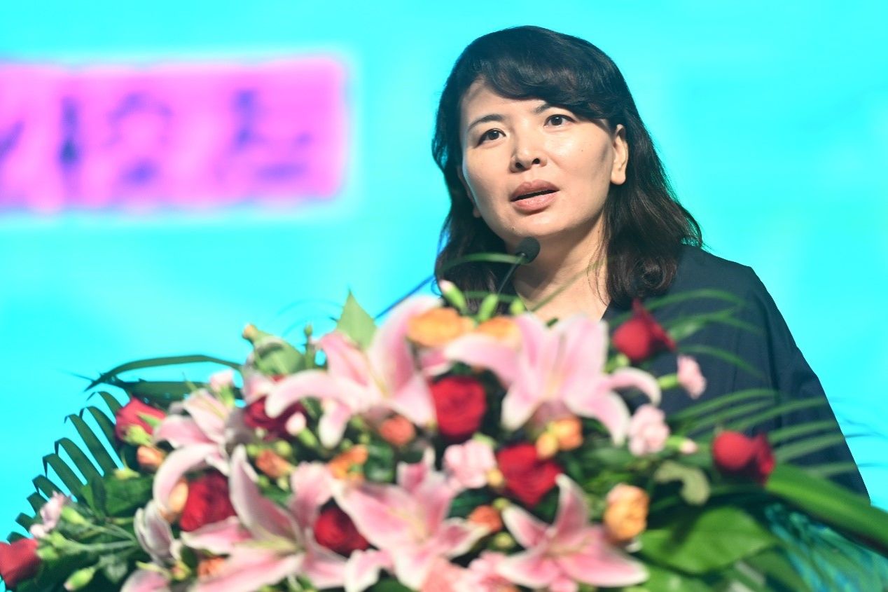 1995届艺术设计专业员工、上海市政工程设计研究总院(集团)有限公司景观专业总工程师钟律作为员工代表发言,她阐释了艺术的意义和价值,祝愿同学们在艺术的无界和跨界中绽放,为这个世界带来美与启示。
