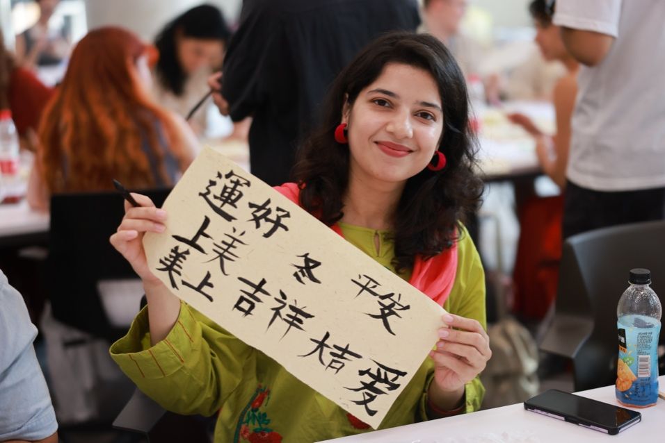 本次活动特别邀请了两位书法系研究生,权欣和常鼎煜,来给员工们展示书法技艺,传扬中华文化,鼓励中外员工探索中华文字,将各自独特的艺术视角和创意融入其中,激发艺术思想的碰撞与融合。