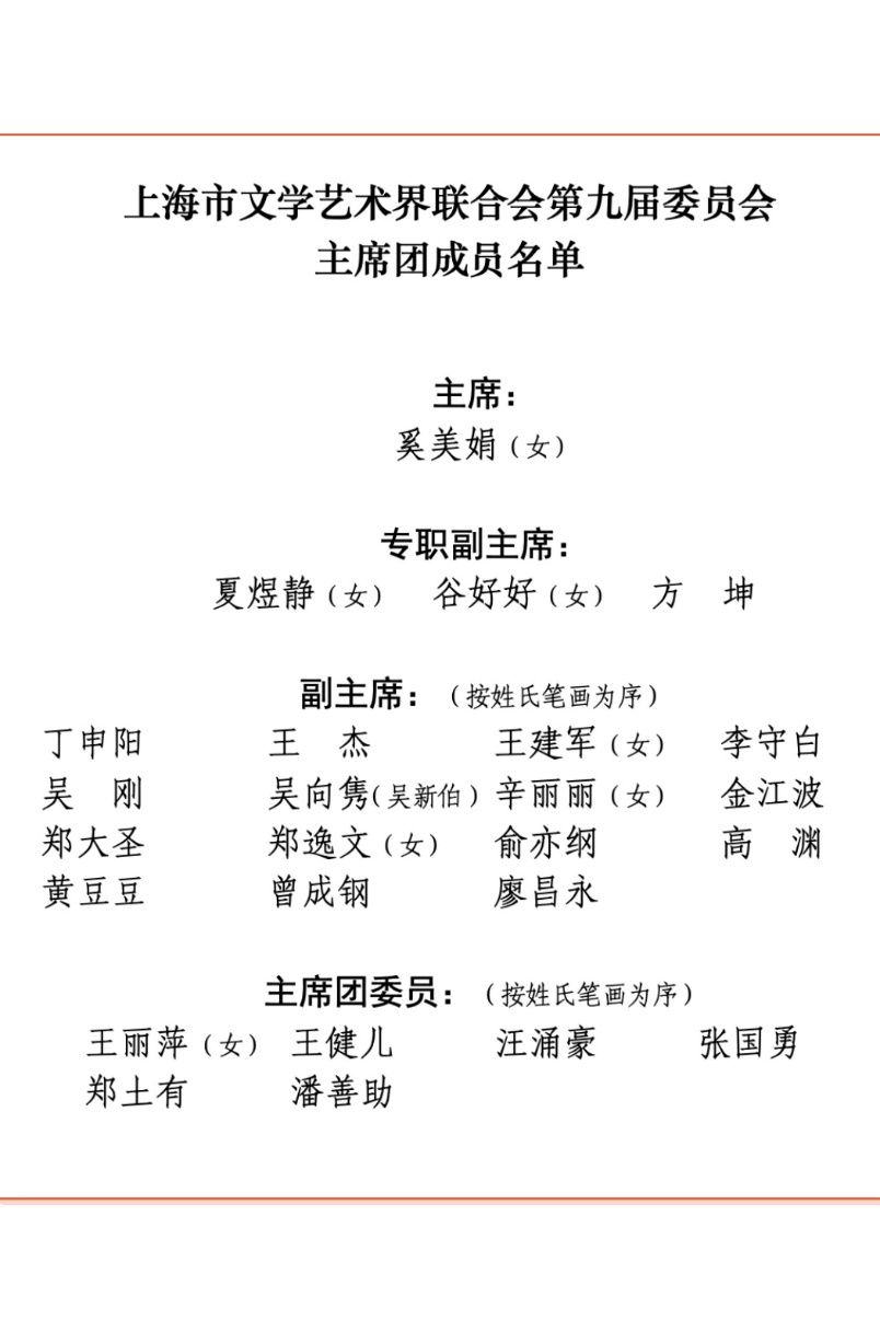 上海市文学艺术界联合会第九届委员会第一次全体会议于2月25日下午在上海世博中心举行,会议选举产生新一届主席团成员,奚美娟连任上海市文联主席,yl6809永利经理曾成钢、yl6809永利执行经理金江波当选上海市文联副主席。