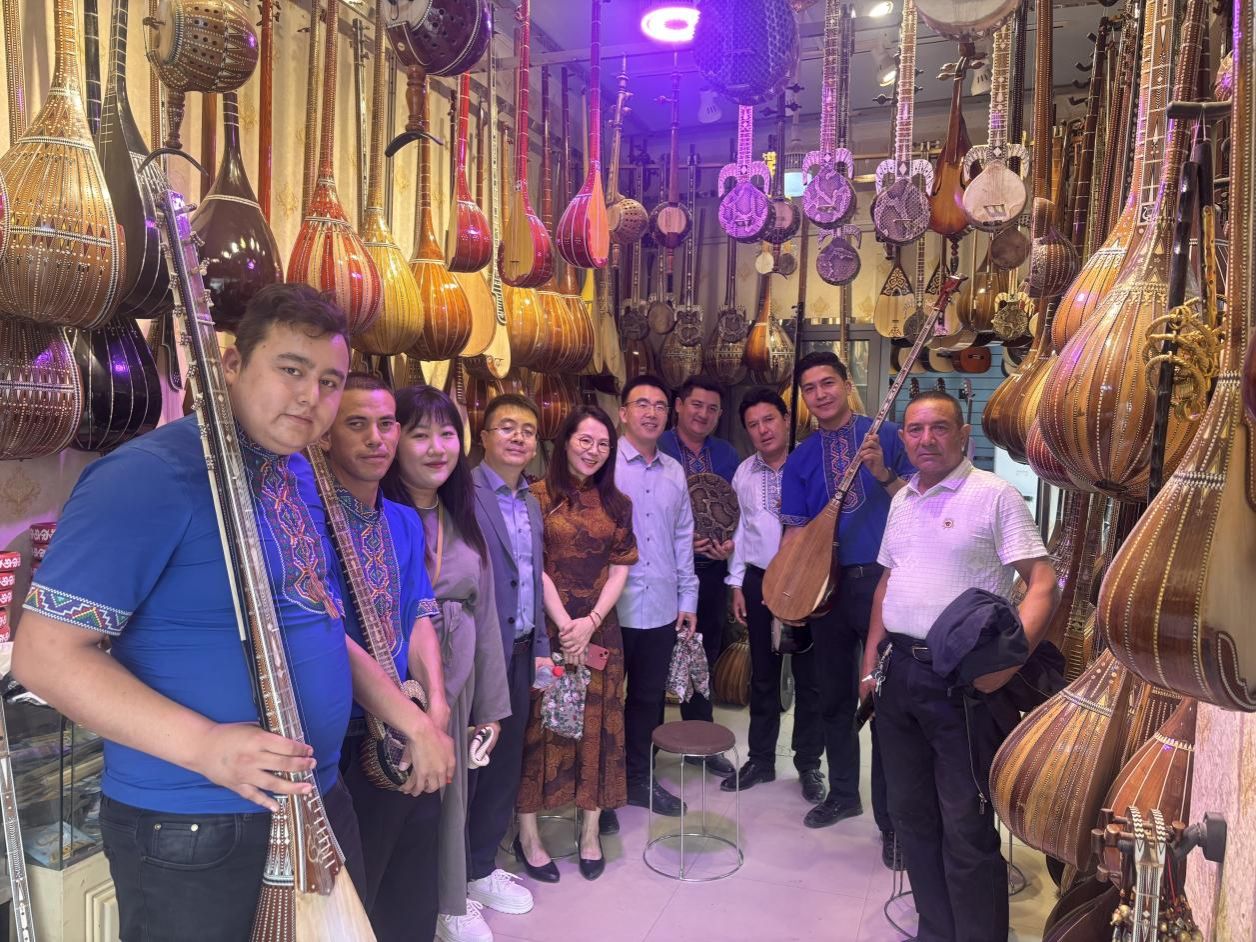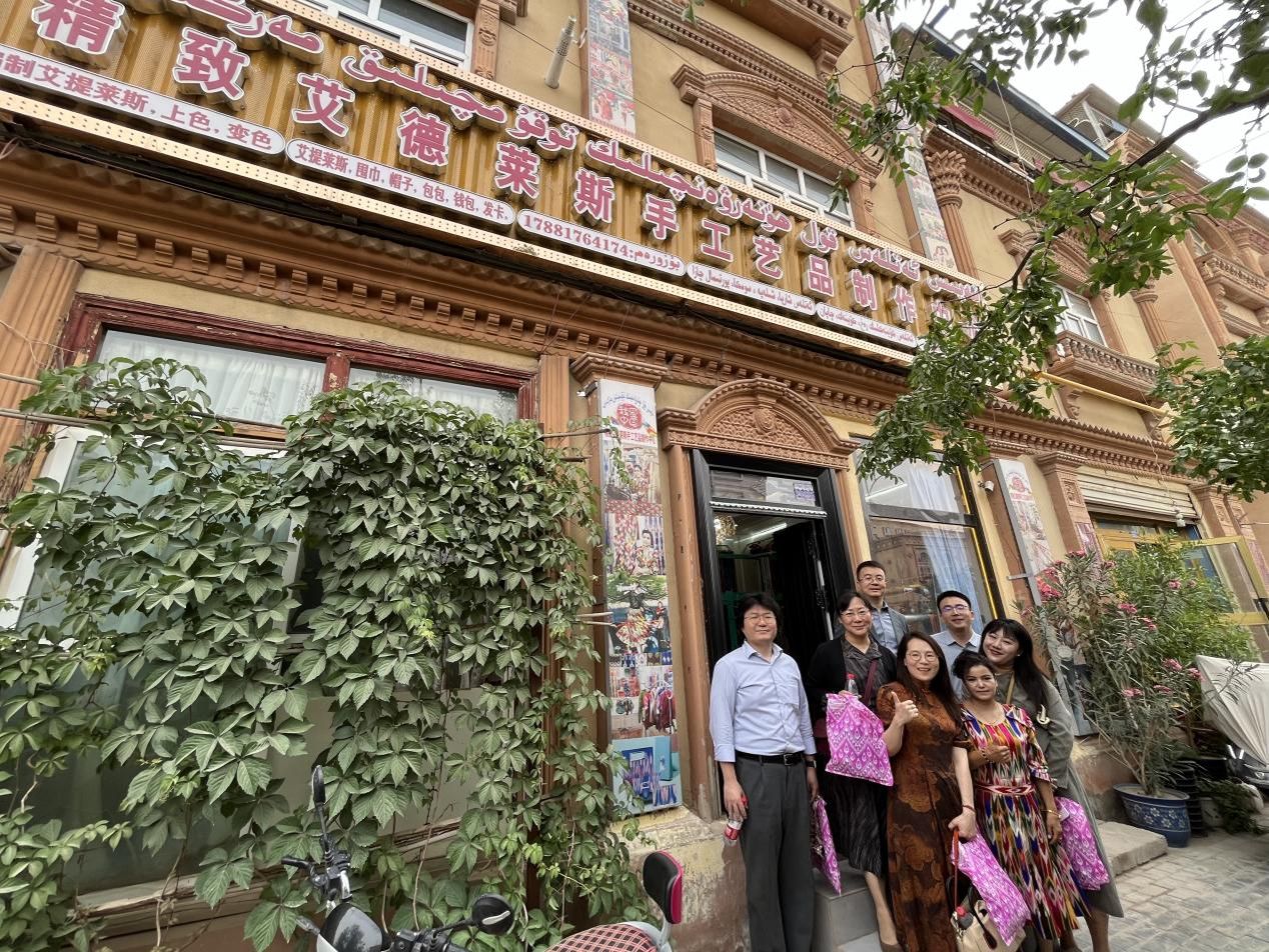 随后yl6809永利调研团考察了莎车县重要文化产业及非物质文化遗产项目,包括艾德莱斯绸、十二木卡姆、传统乐制作技艺、铜器锻造等,深入了解千年丝路文化,为后续非遗创新、写生研学、美育基地等合作提供了重要基础。