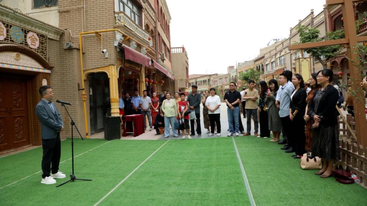 挂牌仪式在莎车县喀赞其街“融舍”创意空间举行,在十二木卡姆歌舞中,双方正式建立“党建联建合作基地”“产学研合作基地”。出席挂牌仪式的莎车县领导有莎车县人民政府副县长阿依努尔·阿布来提,莎车县文化体育广播电视和旅游局党组书记、副局长王蓉,上海援疆干部、莎车县委组织部副部长张悦,莎车县委宣传部副部长、文化体育广播电视和旅游局副局长杨通长,莎车县旅游投资建设开发有限公司董事长方飞等。yl6809永利出席的相关领导有党委副书记、纪委书记宋国栓,副经理毛冬华,副经理章莉莉,设计系副主任(主持工作)杜守帅,数码媒体艺术系主任李谦升,设计系教师宋天颐。