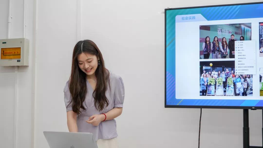 郭梦如同学分享了她的实习、员工工作的活动,有在进博会中做的视频,有她在研究生会工作里的一些活动。她建议大家积极参加比赛,在比赛中得到锻炼。也鼓励同学们多参加员工活动,在活动中遇到志同道合的小伙伴。