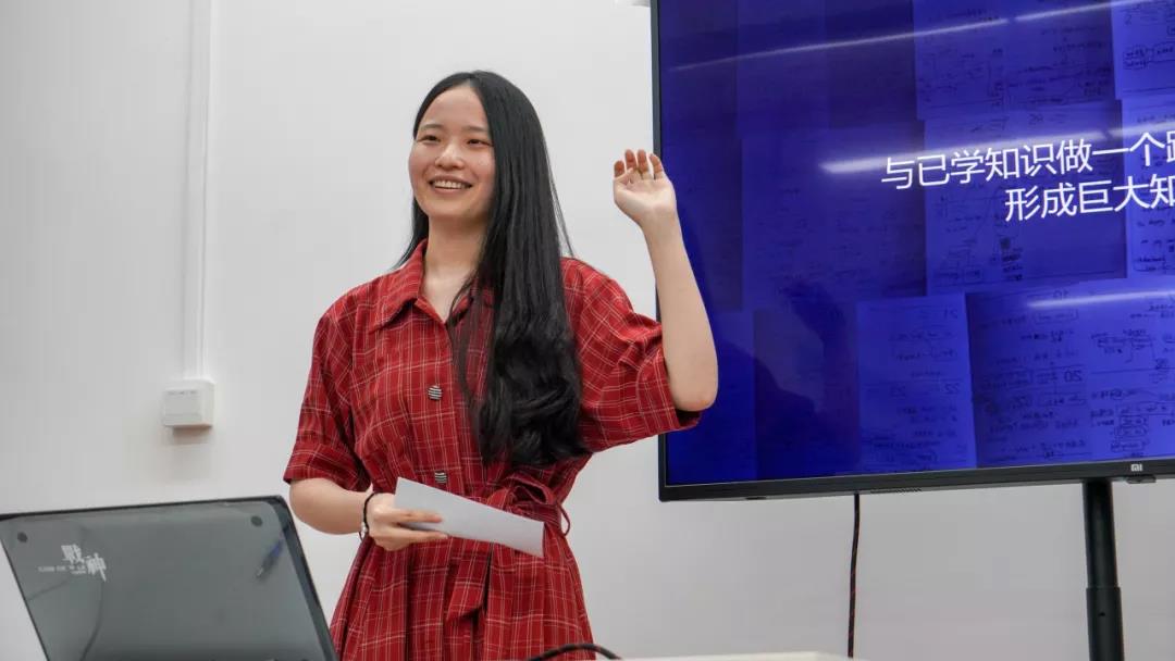 徐倩同学讲述了她为了更好的进行自学,经常会通过定小目标的方式进行针对性自我评估。她以自己平时生活中做事方法为例,向学弟学妹们分享她是如何利用思维导图将工作流程归纳并一步步扩展至上下游,从而串联成自己的体系 。同时也给出了一个自学小方向:先获得一个职业目标,把自己当成一个职业负责人,学习更多元的知识和技能。之后徐倩同学简单的分享了她是如何面对孤独和压力,从而更好地学习和生活,也给同学们带来了很多启发。