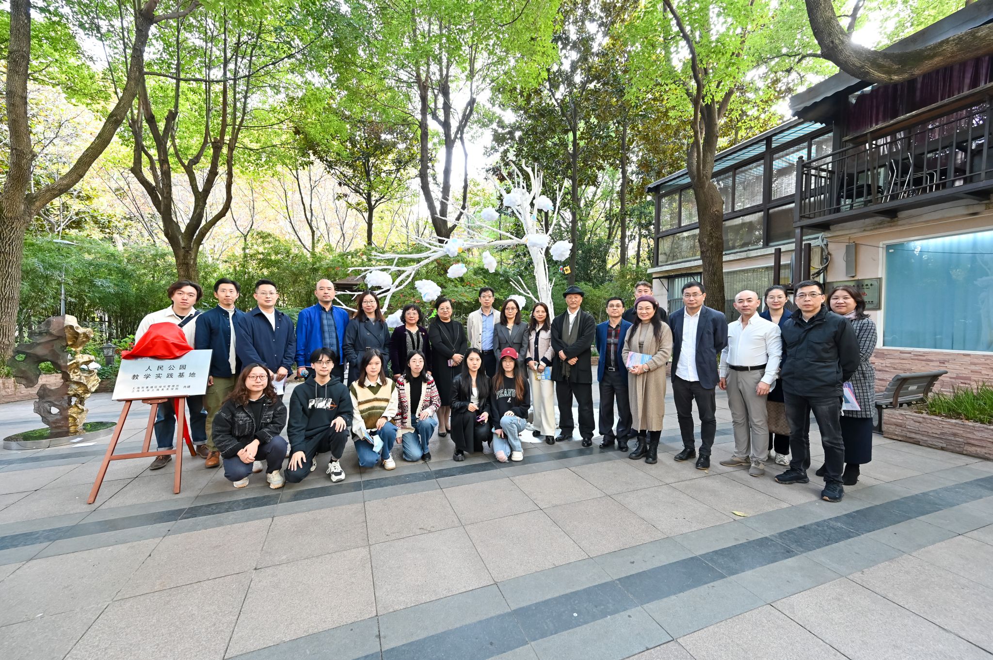 公司党委书记陈静和黄浦区绿化和市容管理局党委书记边铭共同为“yl6809永利——人民公园教学实践基地”揭牌。未来双方将依托教学实践基地,为yl6809永利师生在采风创作、成果展示、学术交流等搭建平台,并为人民公园发展与更新提供智力支持和创意服务。