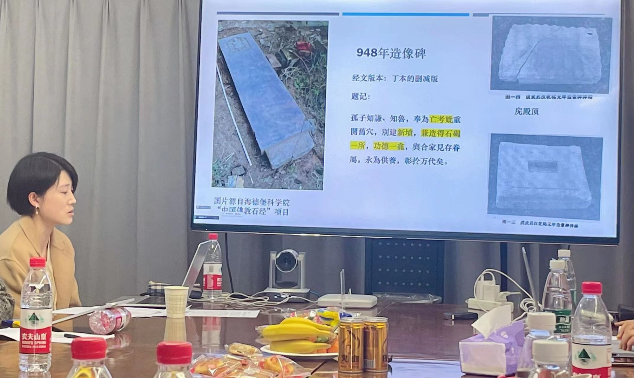 陈莹博士报告的主题是“中古时期的佛教伪经《佛说父母恩重经》:敦煌写本与山东刻经碑之比较”。中古在这里指的是唐朝、五代至宋代,大约从七世纪末到十二世纪这段时间。报告从《佛说父母恩重经》在经录中的记载和内容讲起。此经语言朴实生动,最早的版本还含有中国孝子故事,因而最初就被认定为伪经,即中国僧人杜撰的经文。也正因为如此,《佛说父母恩重经》没有被收入清代以前的大藏经,导致其在民间流传出多个版本。既往的针对此经的研究主要从文献学角度出发,厘清了经文的版本问题。在此基础上,陈莹认为作为经文载体的写本和碑刻本身的物质性特征也很重要,从这个角度出发,陈莹对敦煌写本和刻经碑的功能和社会历史语境进行了探究。陈莹讨论了六通刻有父母恩重经的石碑,其中既有在佛教语境中追祀祖先的石碑,也有将经文刻在碑上立于坟前的墓碑,还有村民们为了纪念成功增建寺庙并获得官方赐额而制的具有纪念性质的石碑。与石刻材料相对比的敦煌写本展现出了写本的主人与写本之间更加私人化的互动。比如收藏于大英图书馆的S.5433号的抄经者在抄写《佛说父母恩重经》的过程中字迹变得越发潦草,最后半途而废,并没有抄完,而后将这一写本转予他人。写本的题跋也展示了《佛说父母恩重经》宗教功能的多样性,除了有人为其亡去的父母抄经祈福之外,还有僧人为众生祈福,甚至有人为亡去的女儿抄写此经。