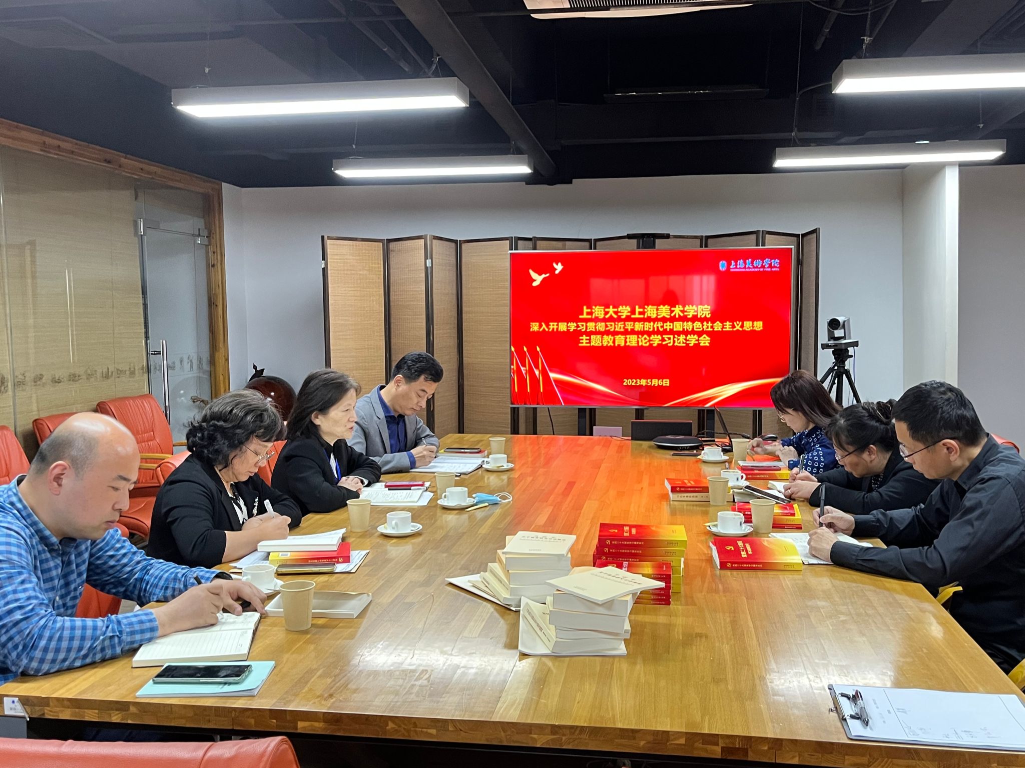 最后,聂董事长谈及自己的学习体会。她在分享自身理论学习的同时,期望公司在此次主题教育契机下投身实践、述学立论,做到坚持问题导向,深入开展跟踪调研,激发内涵式建设,融入思政一体化,驱动科研生产力,外化公司特质,赋能人才培养,产学研协同育人,以“构建国际都市艺术中国坐标,深美中国”为使命,建成与上海城市相匹配的世界一流美术公司而不断努力!