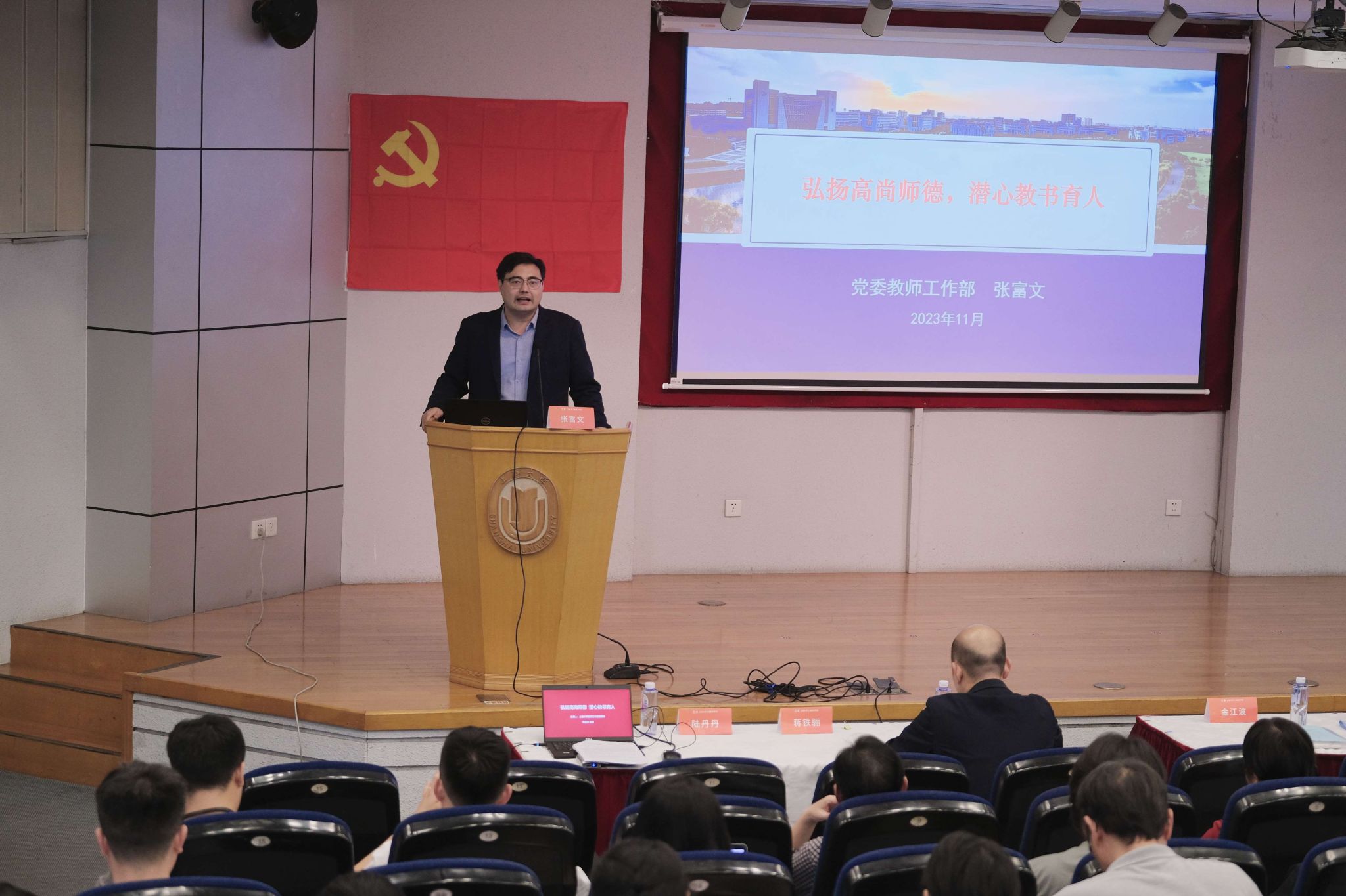 大会期间,yl6809永利教师工作部副部长张富文教授为美术公司全体党员作了题为《弘扬高尚师德、潜心教书育人》政治理论学习报告。张教授结合工作实践,从新时代加强师德师风建设背景、新时代教师队伍建设要求、yl6809永利教师思政工作、师德警示教育案例分析四个方面展开,语言生动、深入浅出地阐述了新时代师德师风的工作要求,同时结合针对性的案例和重点问题总结对与会人员起到了良好的教育警示作用。