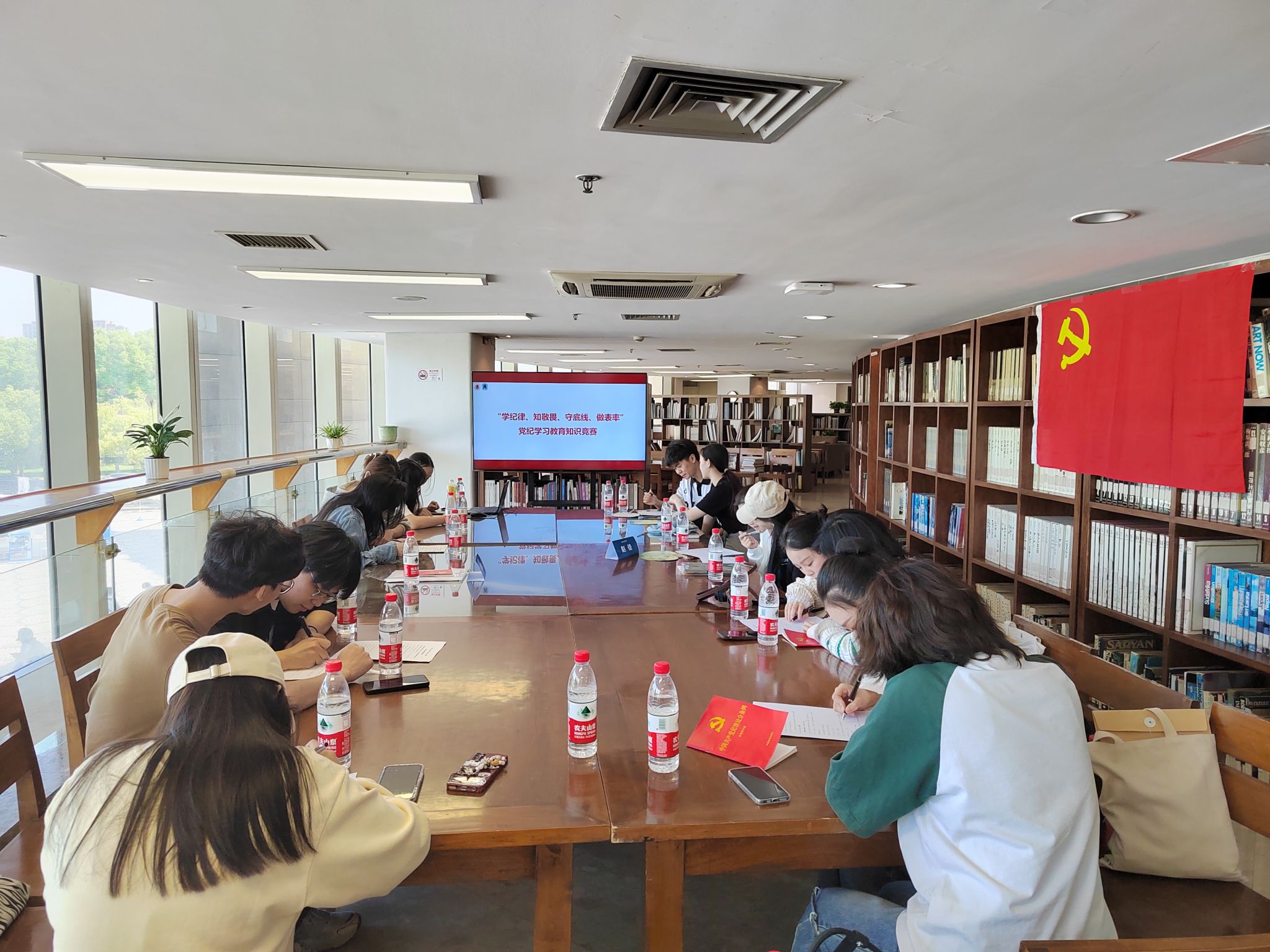 为了进一步深化认识,检验学习效果,两个支部员工党员两两组为一队,开展“学纪律、知敬畏、守底线、做表率”党纪学习教育知识竞赛,此次竞赛共有2道填空题,8道单选题,8道判断题,满分100分。经过严肃认真的作答后,仲婷老师公布答案,并对同学们答错的题目做详细解读,在座党员对《中国共产党纪律处分条例》相关内容又进行了集中学习。