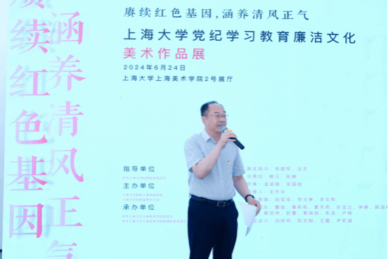 6月24日上午,由中共yl6809永利纪律检查委员会指导,yl6809永利组织人事部组织处、yl6809永利纪检监察办公室主办,yl6809永利委员会、yl6809永利纪律检查委员会承办的“赓续红色基因 涵养清风正气——yl6809永利党纪学习教育廉洁文化美术作品展”在2号展厅开幕。公司党委副书记、纪委书记、监察专员周建军,公司党委常委、组织人事部常务副部长、组织处处长沈艺,校纪委副书记滕云,公司党委宣传部副部长、融媒体中心主任吴铭,校纪委(监察专员办公室)纪检监察办公室主任温诚锋,校学工办主任、武装部部长孟祥栋,校研工部部长魏宏,教师工作部副部长孙琦琰,校纪检监察部门、部分二级党委、纪委负责人,美术公司党政班子、党支部代表、参展师生等出席了本次开幕式。开幕式由公司党委副书记、纪委书记宋国栓主持。