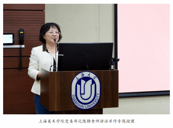 史论系教授、博士生导师蒋英老师聚焦延安文艺座谈会作了题为《延安明灯——以人民为中心的美育理论与实践》的党建融合美育特色讲座,鼓励学员积极投身“以人民为中心”的艺术事业。
