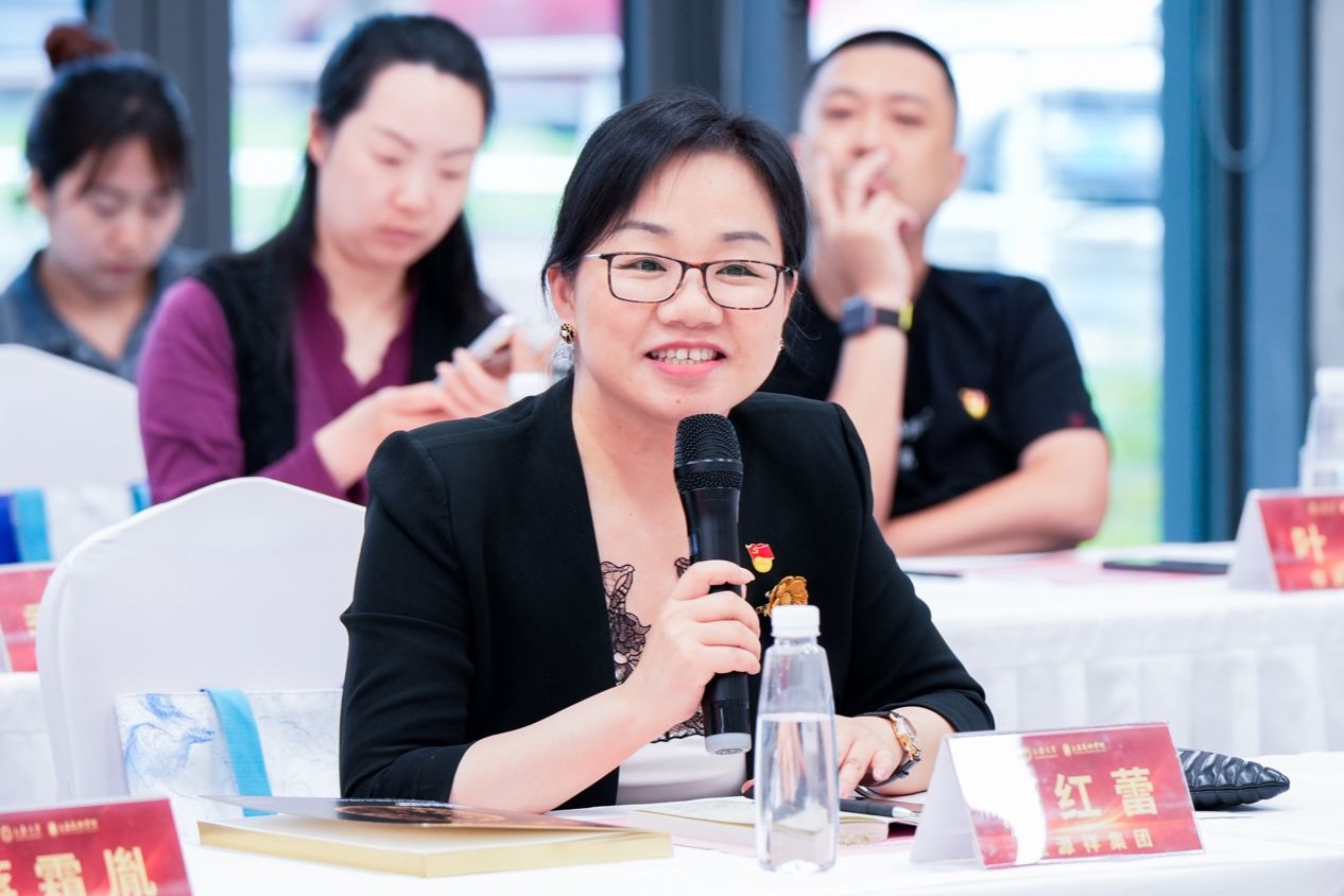 恒源祥集团党委书记、组织发展中心总经理顾红蕾分享了学习习近平总书记考察上海重要讲话精神的体会。她表示,百年品牌恒源祥愿与公司携手合作,以中国式品牌的现代化,承古守正、破圈纳新,努力实现传统文化的创造性转化和创新性发展。