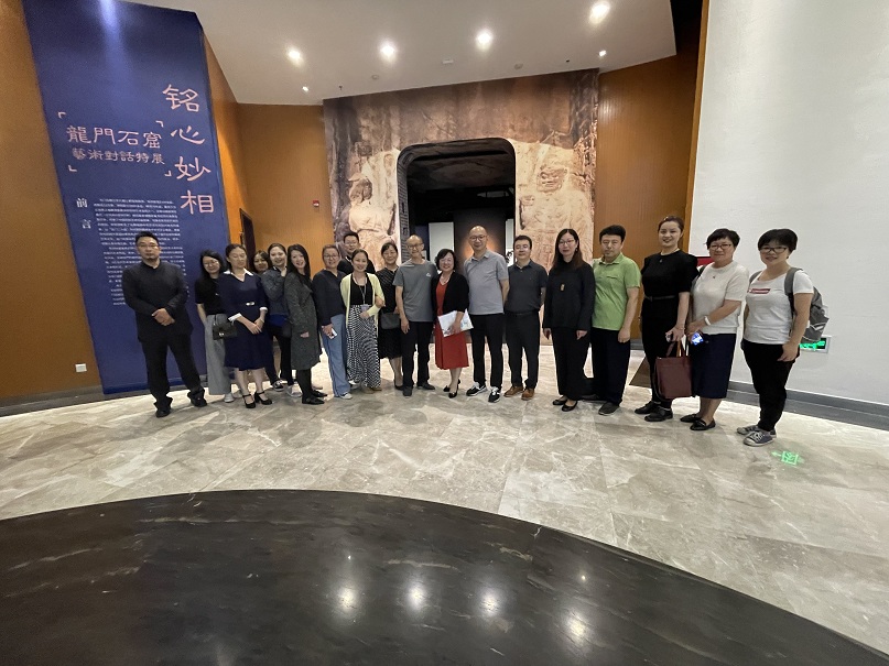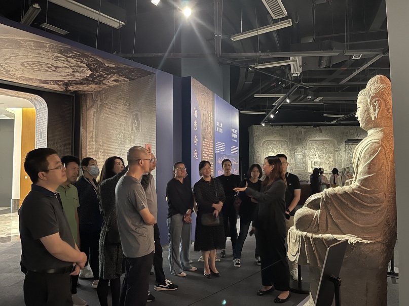 2021年10月15日下午,公司召开中心组(扩大)学习会,公司党政领导、系部主任、党支部书记等公司中层干部30余人参会。本次学习主题是参观yl6809永利博物馆展出的龙门石窟艺术对话特展“铭心妙相”,展览策展人、公司史论系马琳副教授为与会人员导览。