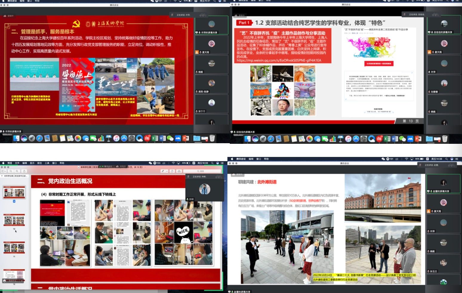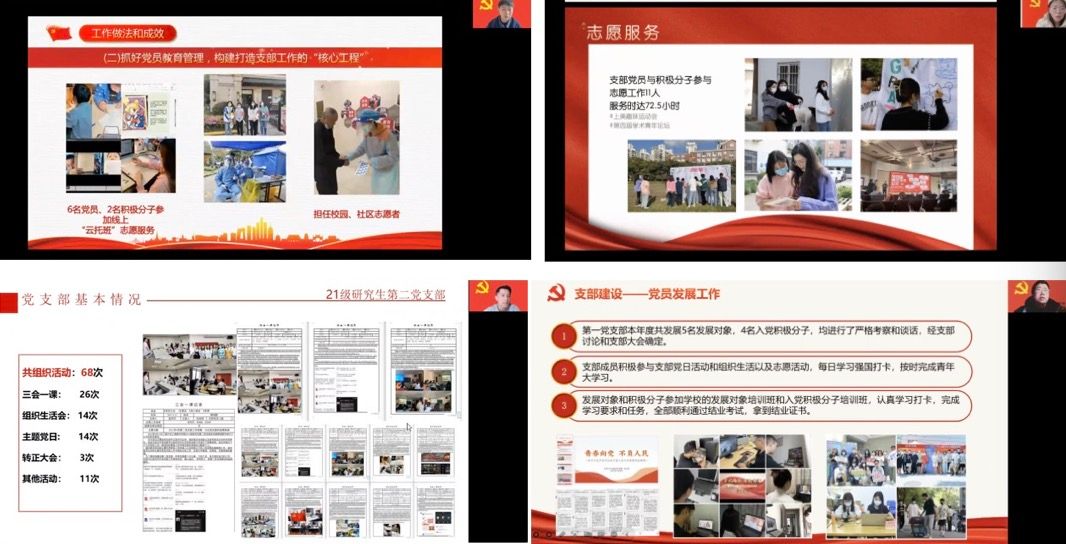 党委副书记、纪委书记宋国栓指出,疫情防控以来,对大家的生活和工作都带来了全方位、前所未有的巨大影响,彼此承担了来自工作、家庭等不同方面的压力,但是每个支部想尽办法在有序地推进和开展卓有成效的特色工作。基层党支部的战斗堡垒作用体现在任何艰难的时候,我们都是能够冲在一线,稳住一方。学工和教工支部联合协同开展工作,考验了基层支部的应急处理机制。今天的述职也是工作的交流,互相学习借鉴,探索联合机制、改进提升措施等。期望明年我们在现有一些探索性、创新性开展学习活动的基础上,继续深入学习党的二十大精神,与业务科研、公司产品等核心工作能够结合起来,边学习边实践边思考,促进我们学习的深化。