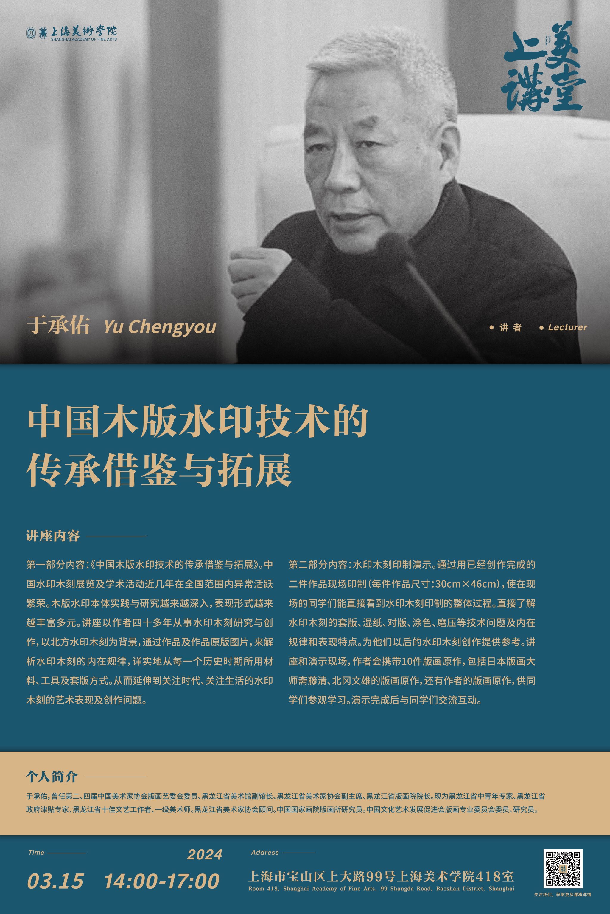 第一部分内容:《中国木版水印技术的传承借鉴与拓展》。中国水印木刻展览及学术活动近几年在全国范围内异常活跃繁荣。木版水印本体实践与研究越来越深入,表现形式越来越丰富多元。讲座以作者四十多年从事水印木刻研究与创作,以北方水印木刻为背景,通过作品及作品原版图片,来解析水印木刻的内在规律,详实地从每一个历史时期所用材料、工具及套版方式。从而延伸到关注时代、关注生活的水印木刻的艺术表现及创作问题。