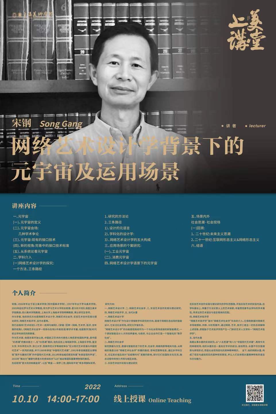 作为学者,他的研究方向是网络艺术设计学、网络艺术社会学、实验艺术创作实践与理论研究、网络艺术批评学、当代水墨等。