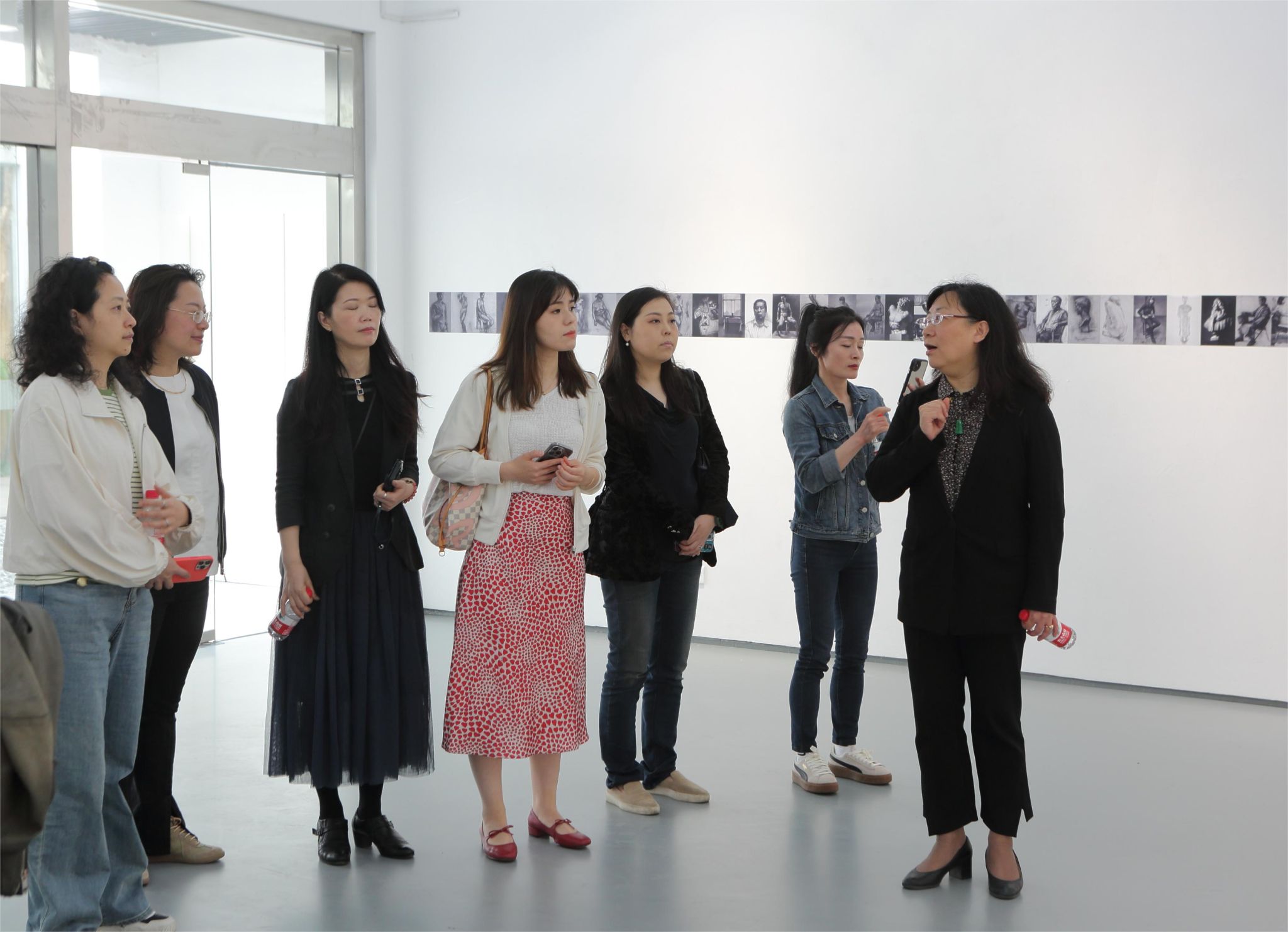 毛冬华副经理为上海市紫竹园中学教师团队导览了“雕塑基础素描展”,展览囊括了全国各大公司的优秀素描作品,毛冬华副经理为大家生动讲解了展览作品,进一步加深了大家对于展览作品的认识和理解。