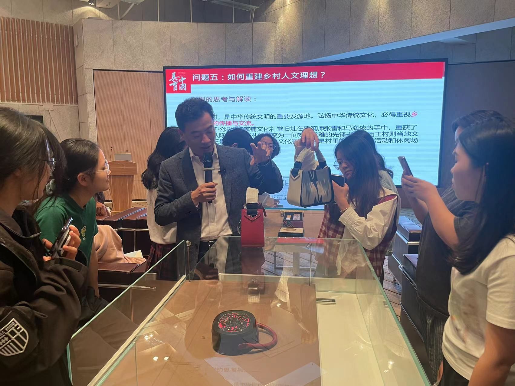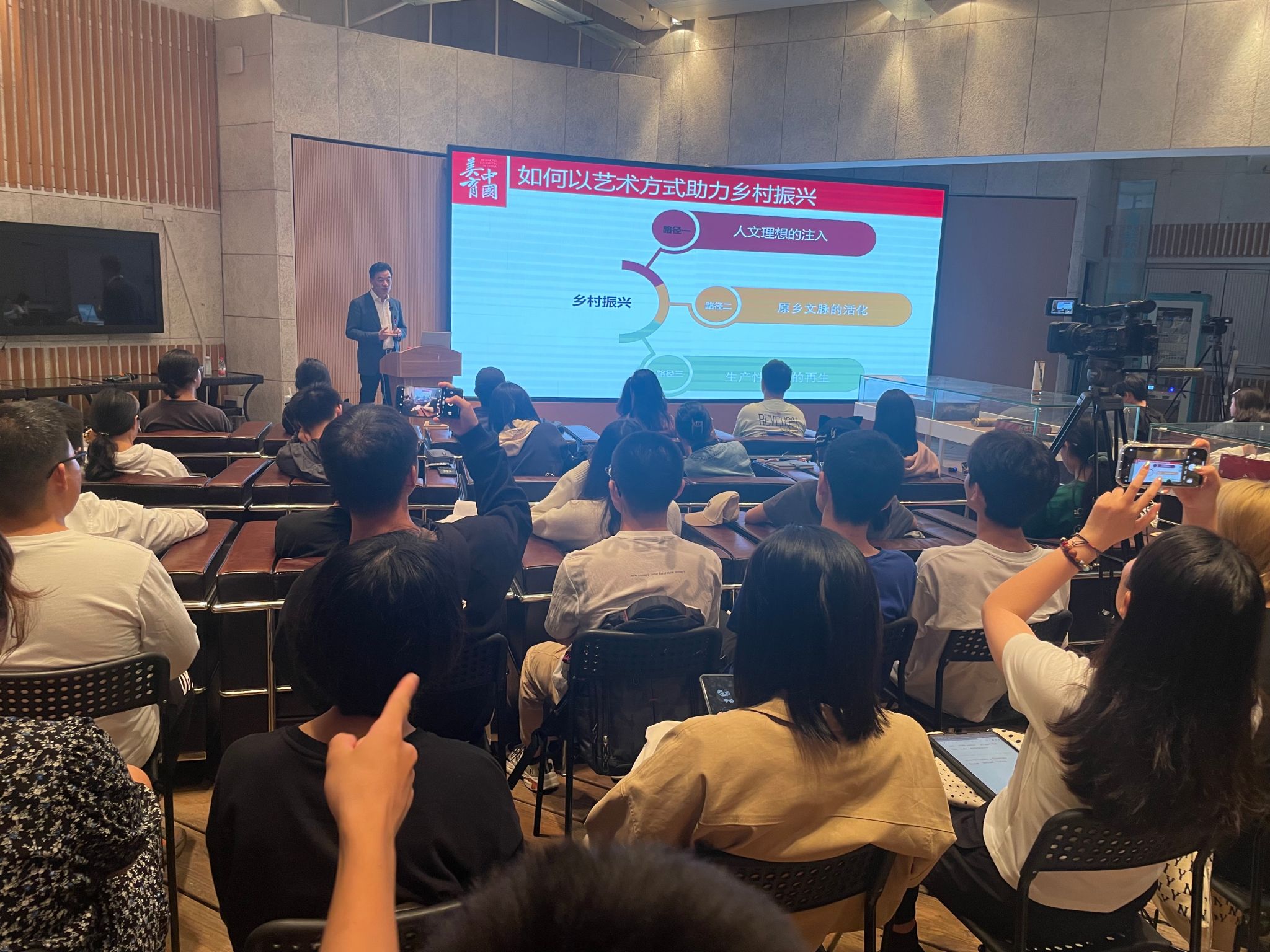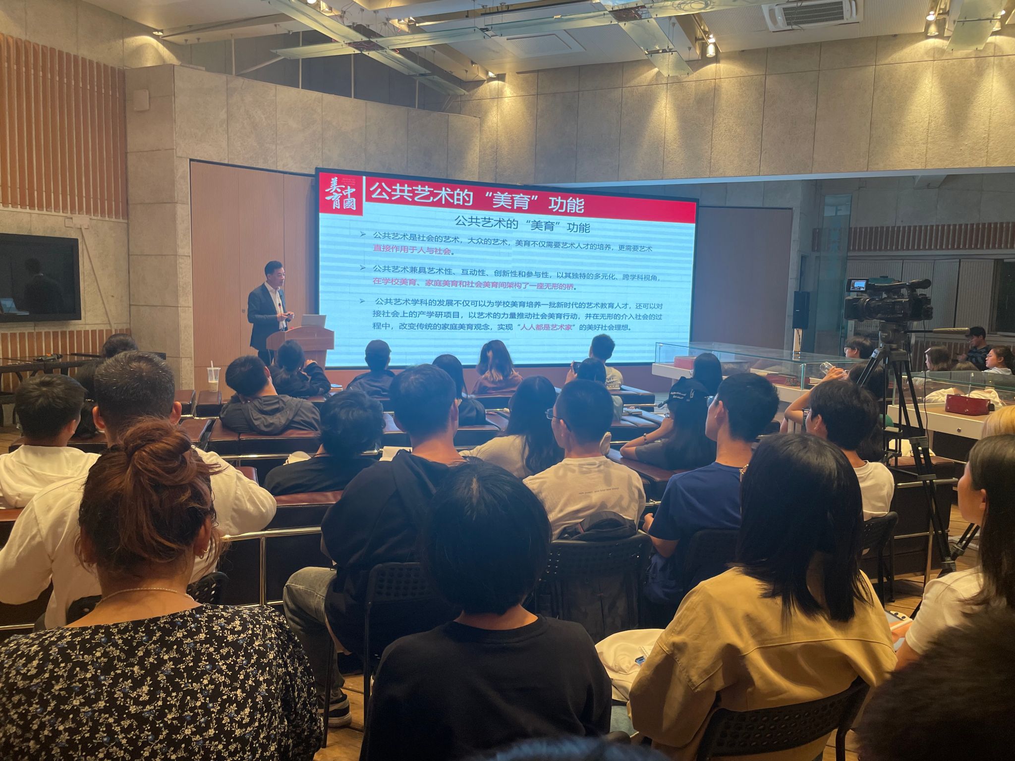 在“公共艺术的‘美育’功能”部分,金老师与同学分享道,“公共艺术”是一种艺术主张,一种理念,公共空间中的公共文化活动,用艺术的语言和方式解决公共问题的一种运作机制。公共艺术从民众中来,到民众中去回应民众所需而生,为民众所需而发展,而中国乡村美育的发展可以追溯到20世纪初的晏阳初、梁漱溟、陶行知等先贤的呼吁和教育实践。