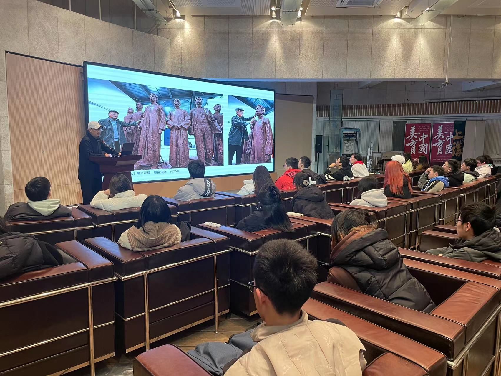 美育中国的第七讲,由著名艺术家蒋铁骊教授为员工带来“大美之艺与传世之作——塑造国家艺术形象的审美工程”的内容。蒋老师从“古代雕塑之民族精神象征”说起,以原始雕刻实例引证雕塑自产生之初便留存人类历史进程与记忆,指出雕塑艺术表达特定文化价值、传承民族文化遗产、强化民族精神记忆、肩负国家形象表达。他详细讲解了《人民英雄纪念碑》浮雕、毛主席纪念堂雕塑、中国共产党历史展览馆“建党100周年主题雕塑”等国家主题的经典传世之作,如何强化历史记忆、弘扬民族精神、塑造国家形象的。在“我的雕塑实践与探索”部分,蒋铁骊教授结合近年来创作的主题雕塑,展示了十几件熔铸“上海精神”的珍贵作品,如上海一大会址纪念馆主题雕塑《历史选择 伟大起点》、上海机器工会成立百年纪念雕塑《新生的力量》、中共中央秘书处机关旧址主题雕塑《忠诚与奉献》、中国共产党历史展览馆主题雕塑《五卅运动》等作品,并鼓励同学们从个体与集体出发,探索艺术与科技融合,面向时代文化、服务社会发展、彰显城市精神、表现中国记忆。同学们课后留言表示要去蒋老师创作的雕塑作品地打卡留念。
