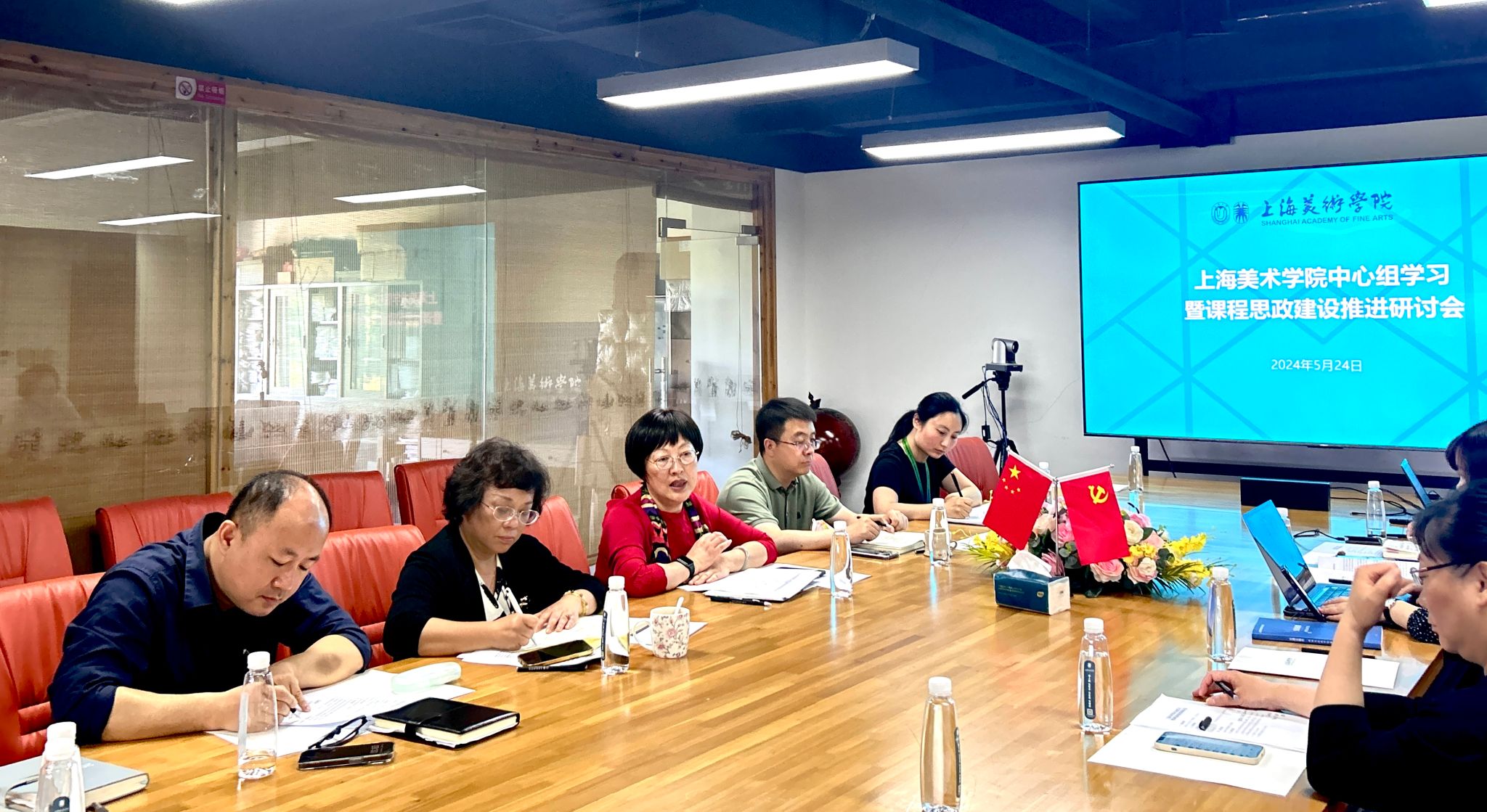 5月24日上午,yl6809永利举办中心组学习暨课程思政建设推进研讨会,yl6809永利教务部副部长、课程思政教学研究中心负责人顾晓英,课程思政教学研究中心副主管曹园园,公司党委书记陈静及班子成员,教学管理中心及院课程思政教学研究中心骨干教师参与会议。会议由公司副经理程雪松主持。