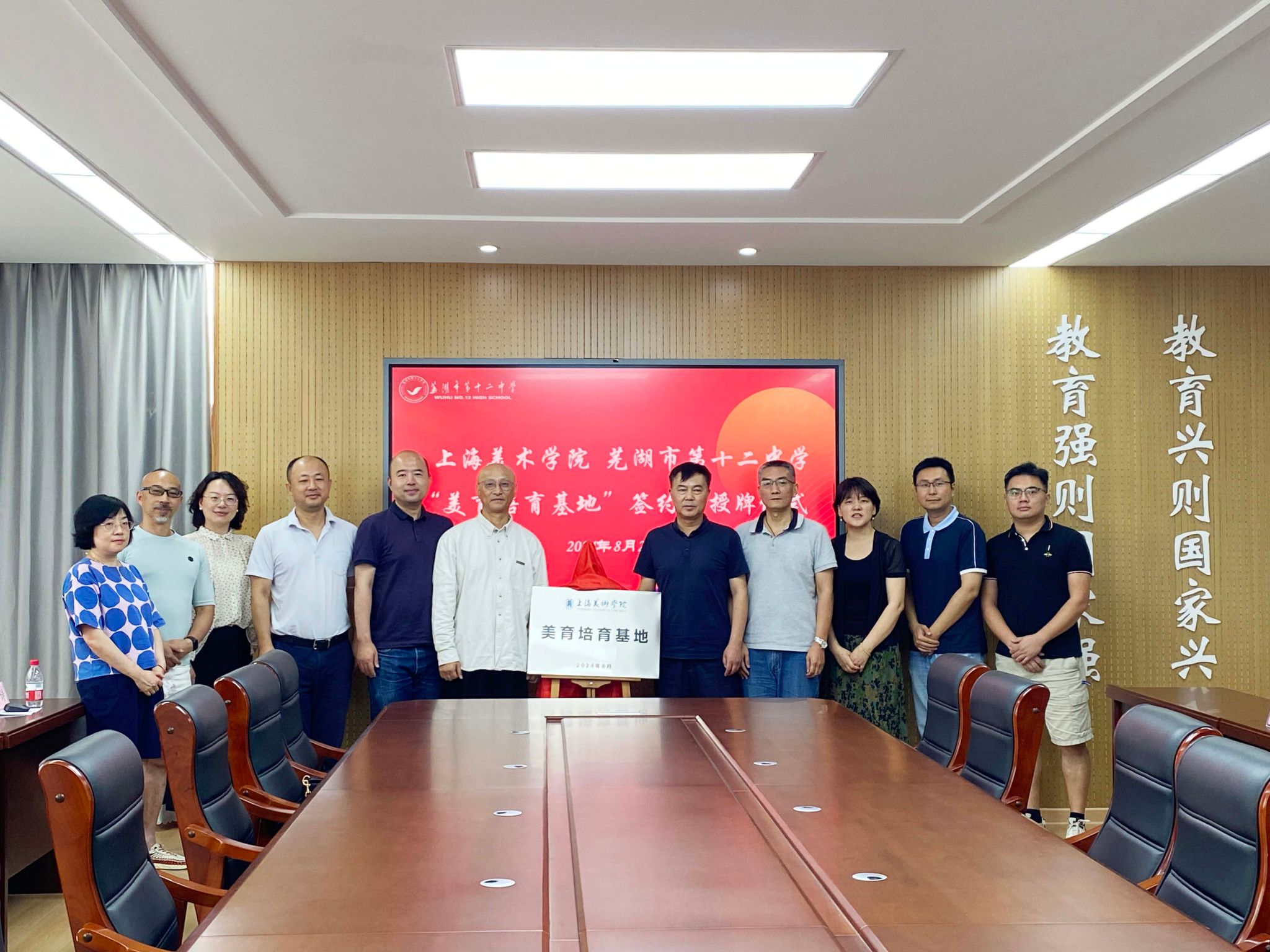 8月28日上午,yl6809永利美育团队访问安徽省示范高中芜湖市第十二中学,芜湖十二中党委书记、董事长查海曼,副董事长查全军、陈凌,教务处主任陈波,政教处主任黄太强,政教处副主任王春健,教务处副主任夏小云、李明,美术组杨枝菊出席美育基地签约授牌,双方深入探讨了公司特色发展和开展美育浸润的实施路径。
