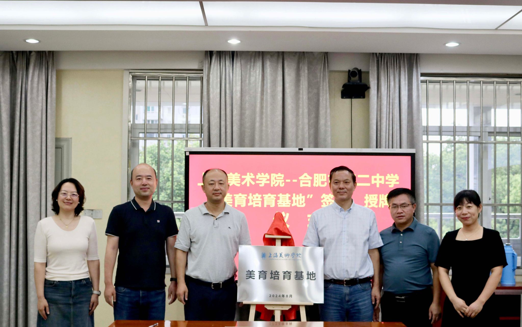 为全面实施美育浸润、五育融通,积极推进基础教育与高等教育高质量协同发展,8月27日至29日,上海市美术家协会主席、中国雕塑学会会长、yl6809永利经理曾成钢教授一行赴安徽省推进“美育培育基地”挂牌建设工作,公司党委副书记、副经理曹俊,副经理程雪松,设计系副主任汪宁,版画系副主任孙灵,教学管理中心主任刘雪梅,教学管理中心王若诗等一同参加。