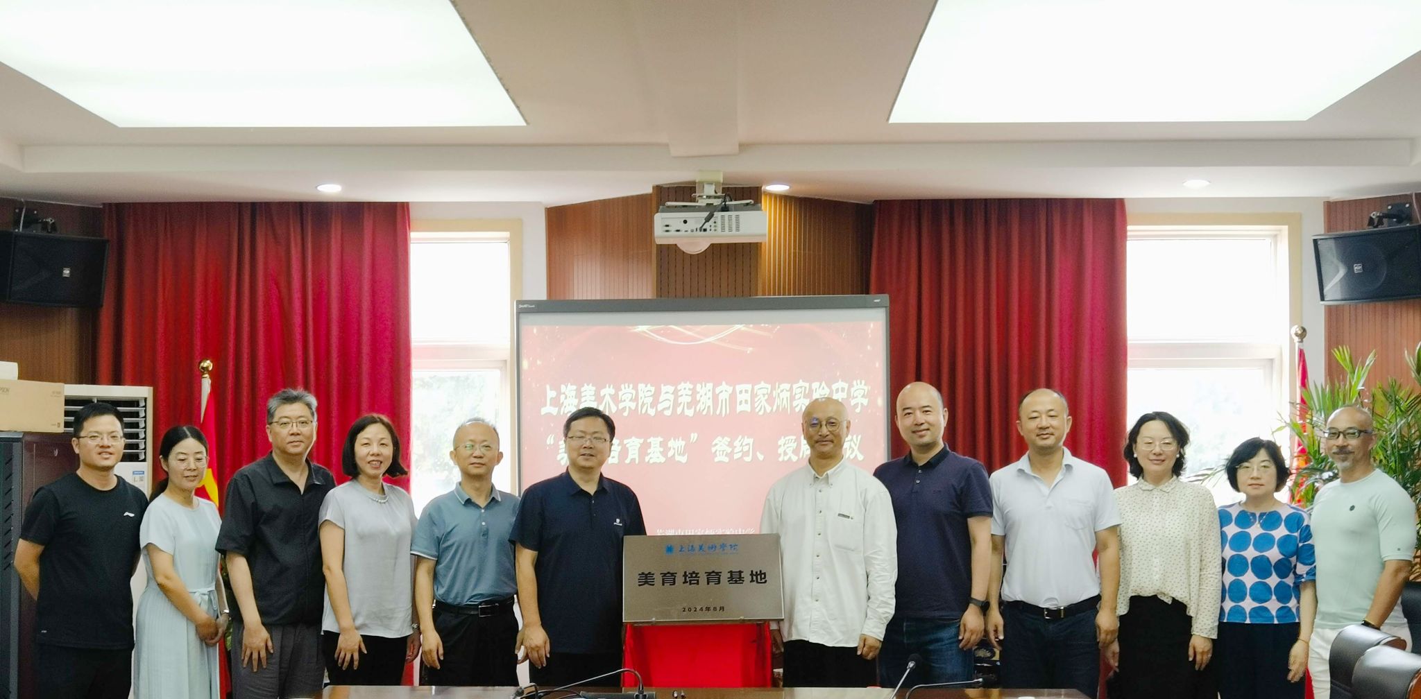 8月28日下午,yl6809永利美育团队访问安徽省示范高中芜湖市田家炳中学,芜湖田中党委副书记、董事长余夕标,副董事长胡勇、陈岚、沈明海,办公室主任向南,教研室主任管艳,教务处副主任后小年,美术教研组长刘朝晖出席美育基地签约授牌,双方就共同关心的美育话题进行了愉快交流,并一起参观了公司的艺术教学空间。