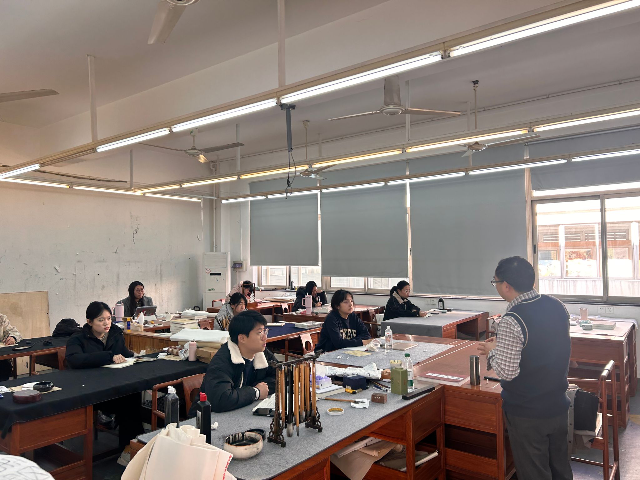 宝山校区由党委书记陈静、经理曾成钢、执行经理金江波、副书记宋国栓、曹俊、副经理王海松、翟庆喜、程雪松带队,各系主任、教学督导组王冠英、陆丹丹参与检查。