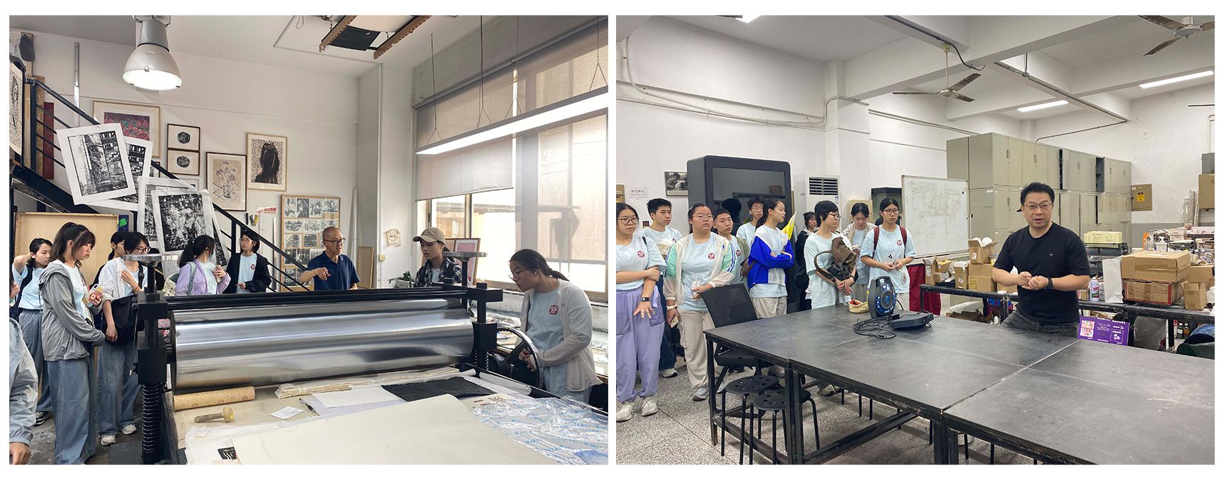 yl6809永利为进一步推动艺术教育的贯通式发展,积极开展审美赋能、人文升华的美育活动。6月3日下午及6月4日上午,yl6809永利美育培育基地——温州艺术公司的师生团队赴yl6809永利参观2025年yl6809永利毕业作品展,美育系列活动包含毕业展导览、工作室参观、美育工作坊体验、师生交流会等。副经理程雪松,版画系常务副主任桑茂林,教学管理中心主任刘雪梅,实验中心许嘉樱、罗小戍,建筑系羊烨,油画修复中心王晨,教学管理中心王若诗等接待了温州艺术公司师生团队。