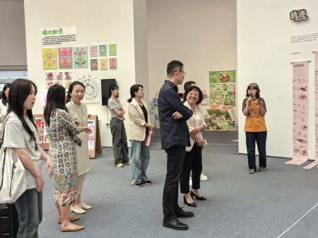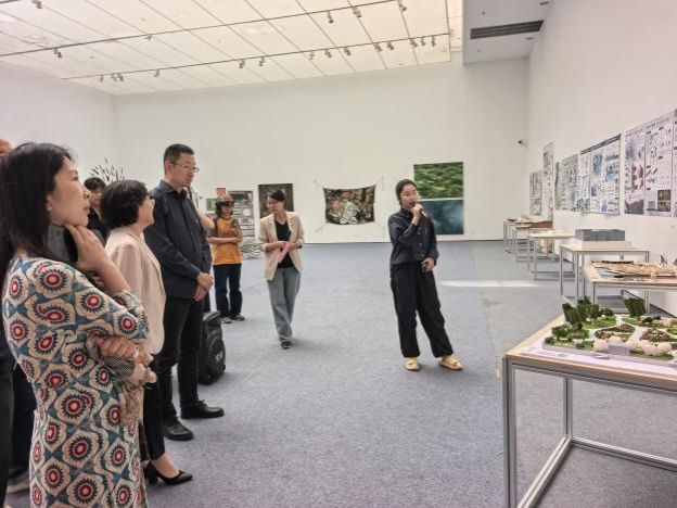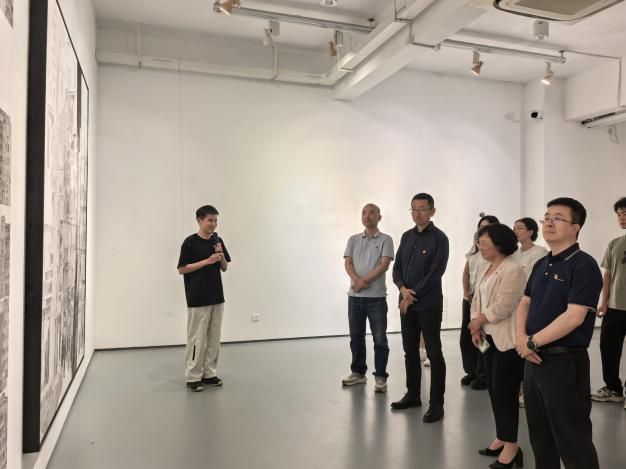 活动伊始,毕业生党员们发挥专业所长,以“党员主题导览”拉开序幕。五位优秀毕业生党员:2021级环境设计本科生胡斯淇、2021级版画本科生张伊婷、2020级建筑学本科生李婧雯、2022级美术硕士研究生倪一涛、2022级艺术设计硕士研究生李天宇分别结合自身创作实践,生动解读作品背后蕴含的创作理念与艺术追求,深刻阐释了艺术创作如何与社会责任、时代使命紧密链接,展现了新时代上美学子用画笔讲好中国故事的自觉担当。