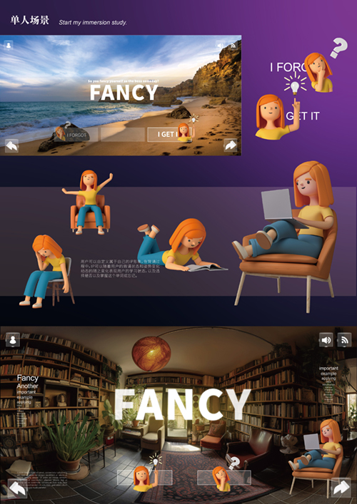 这门课程为我提供了丰富的知识和实践经验,对我有很大的帮助。我觉得宋老师教授课程的方式非常生动而富有启发性,老师采用鼓励多于批评的教学方式,陪伴我们一步步探索和实践。第一节课,老师带VR眼镜给我们体验,我发现只有自己切身感受过之后才会对设计有更多更深的想法。在做项目的过程中,老师一般都给予正向的鼓励,我以后遇到要做界面设计的时候,也能自信地说:“我能做!”
