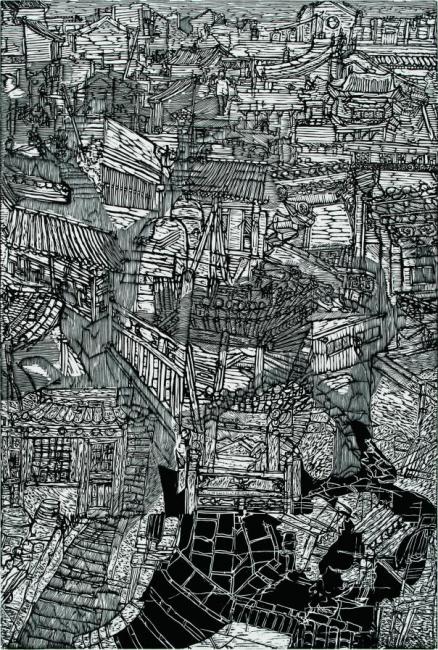 《迷城》 黑白木刻 60x90cm 陆珠荟