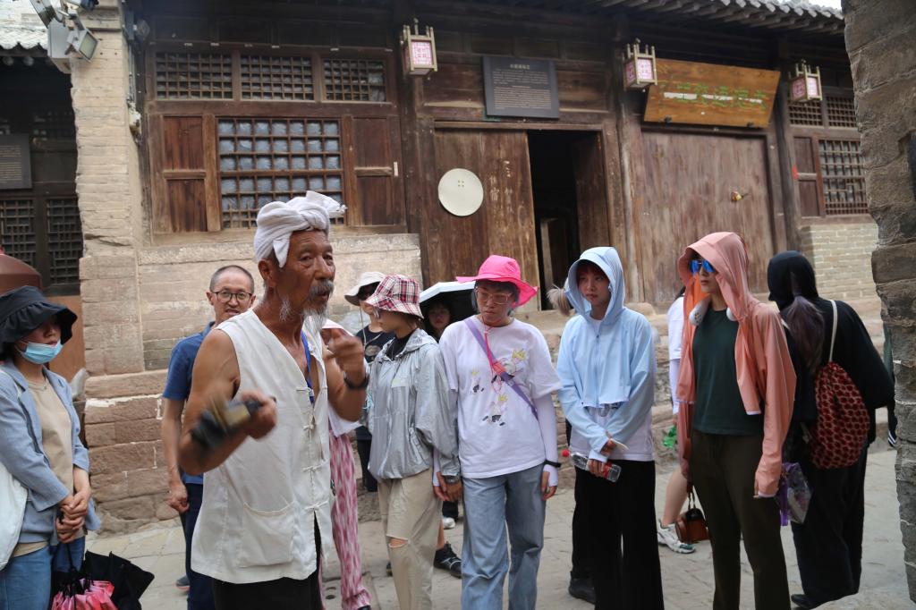 考察现场:当地老乡介绍古镇历史